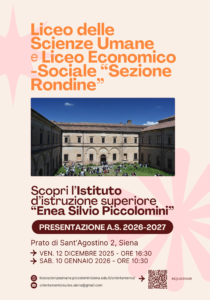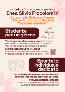OPEN DAY: i giorni venerdì 12 dicembre 2025 dalle ore 16.30 e sabato 10 gennaio 2026 dalle ore 10.30 saremo felici di aprire le porte del nostro Istituto e di accogliervi nella nostra aula magna. Basta presentarsi nei giorni indicati, non occorre la prenotazione! Di seguito la nostra brochure e le locandine informative: